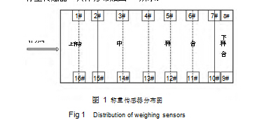 整車式動態地磅秤體由上秤臺、中間秤臺和下秤臺構成,上秤臺、中間秤臺和下秤臺分別由 4 只、10 只和 2 只稱重傳感器支撐,傳感器的擺放位置為 1# ~ 16#。